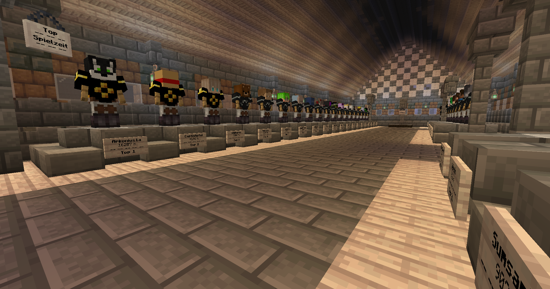 Unter /fun wurde die Hall of Fame eröffnet, die euch zeigt, welche Spieler die meiste Spielzeit haben.